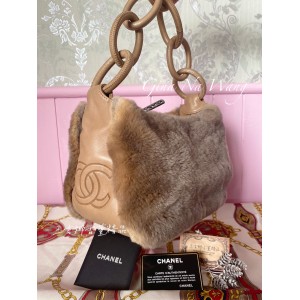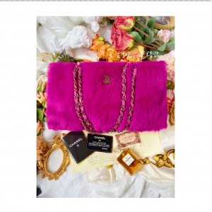 (送走) Chanel vintage 兔毛粉紫色肩背包