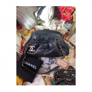 (售出) Chanel 黑銀揉皺羊皮/蛙釦包/雲朵包