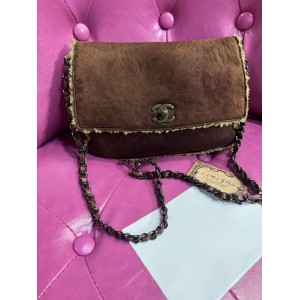 (售出) Chanel 奶茶羊皮金鍊半月包