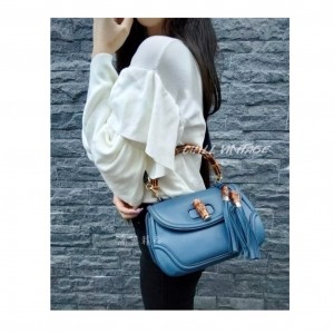 (送走)Gucci 霧霾藍竹節流蘇牛皮斜背包