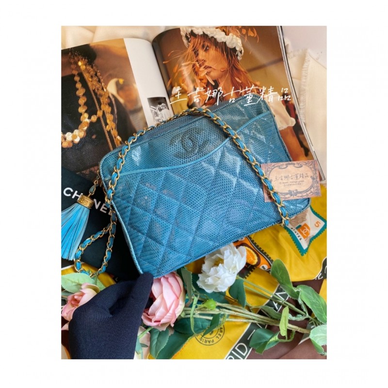 (售出) Chanel 天空藍蜥蜴皮相機流蘇包