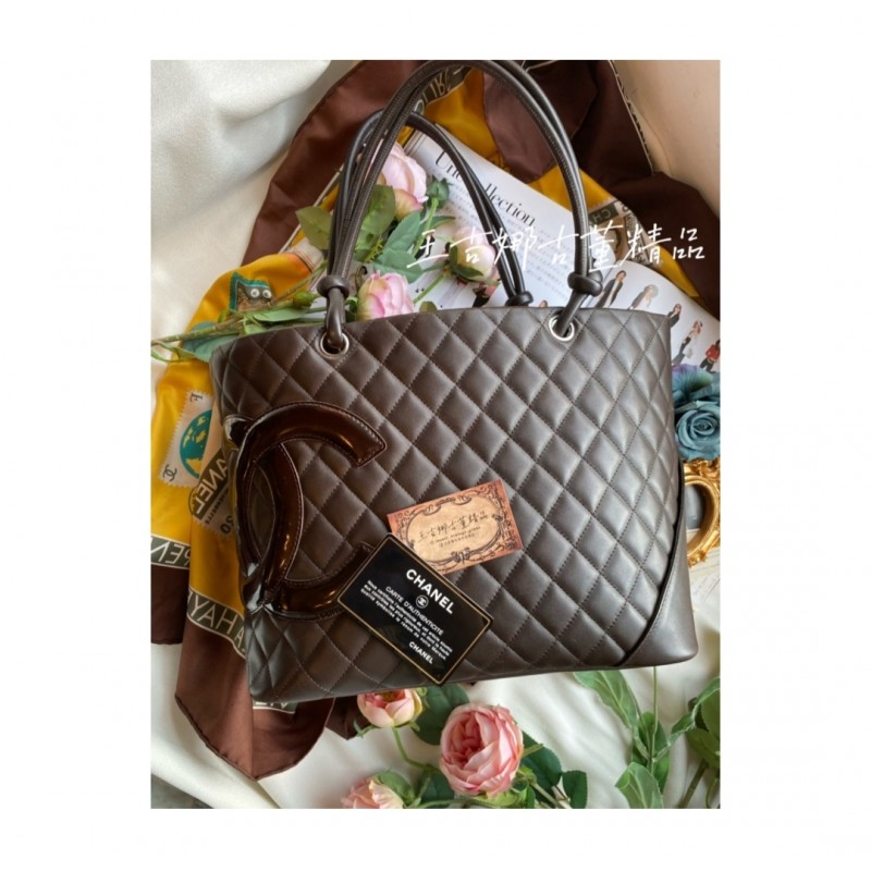 (售出) Chanel 康朋牛皮深可可配漆logo包