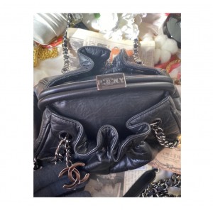 (售出) Chanel 黑銀揉皺羊皮/蛙釦包/雲朵包
