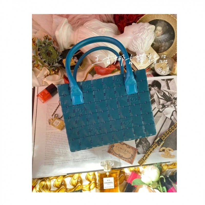 Chanel vintage藏家款壓克力藍綠色手提包/超酷超稀有/錯過保證買不到/秀款稀少美品