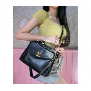 (售出) Chanel 黑金荔枝皮大金釦斜背包