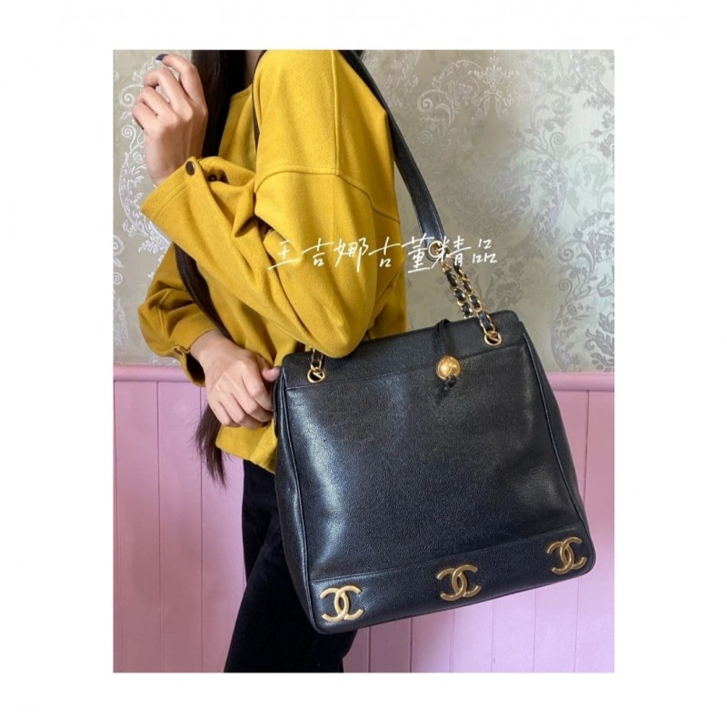 (售出)Chanel 黑金荔枝 6 logo斜背包