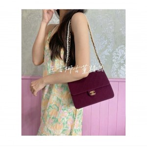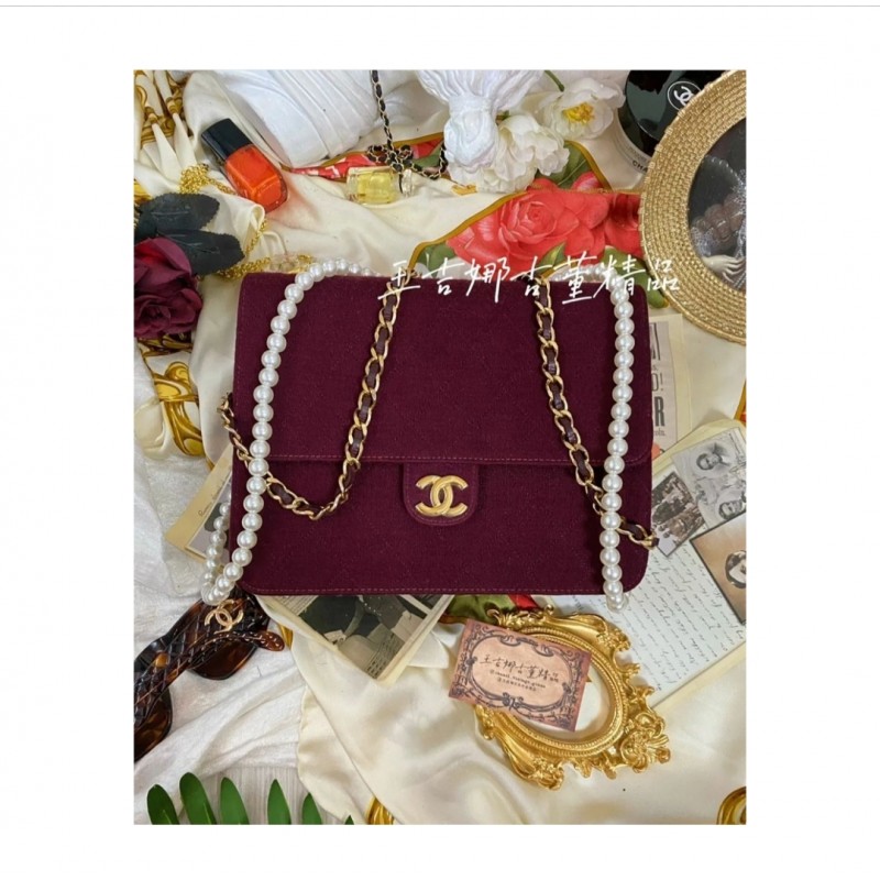 (售出) Chanel vintage 酒紅肩背包/配珍珠鍊