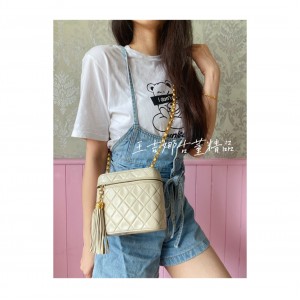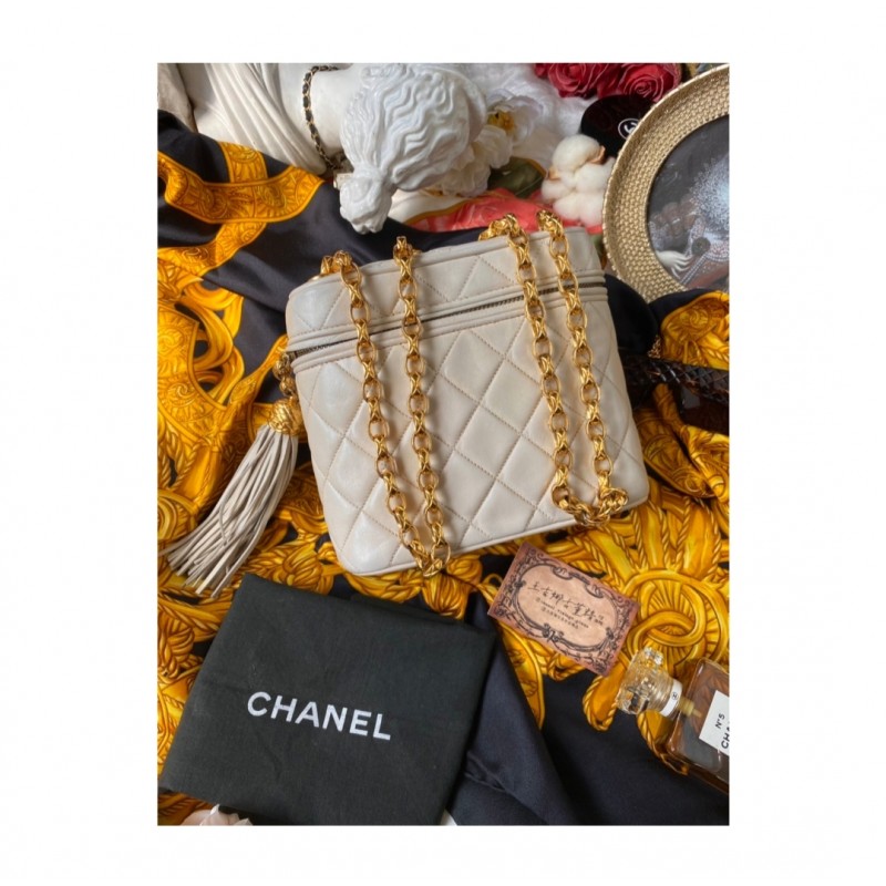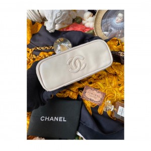 Chanel vintage 古董米白色羊皮雕花金包/藏家系列/硬殼款式/必收