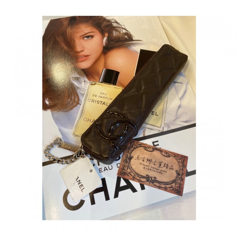 Chanel vintage 古董康朋深咖啡筆袋/精緻藏家
